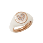 Anello Paillettes Sygillum in oro rosa 18Kt, galletto in pavé di diamanti e smalto bianco