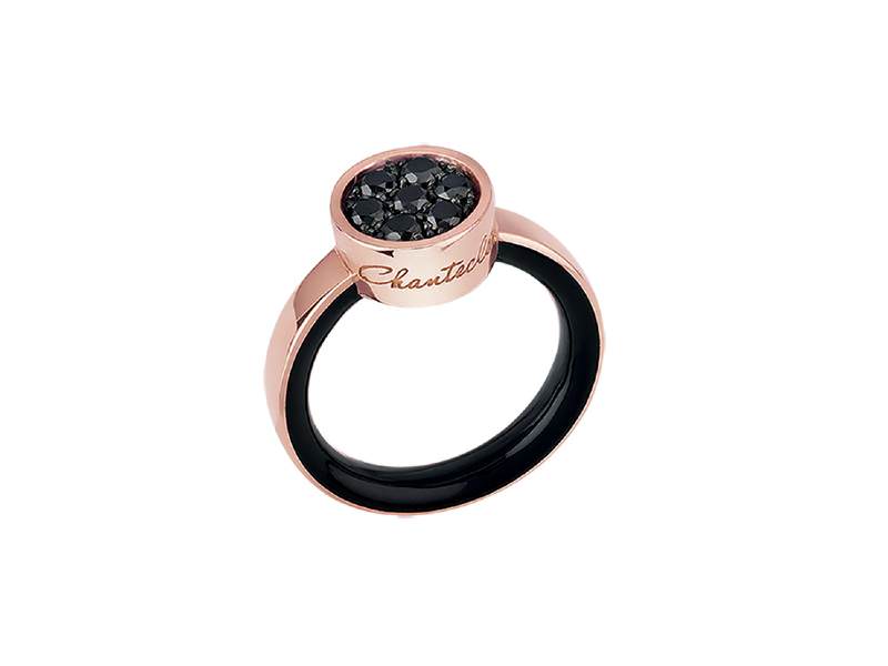 Anello Paillettes in oro rosa 18Kt, con bottone centrale in pavè diamanti neri e smalto nero interno