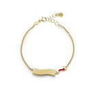Bracciale "Fortuna" in oro giallo 9kt con cornetto smaltato e targhetta.