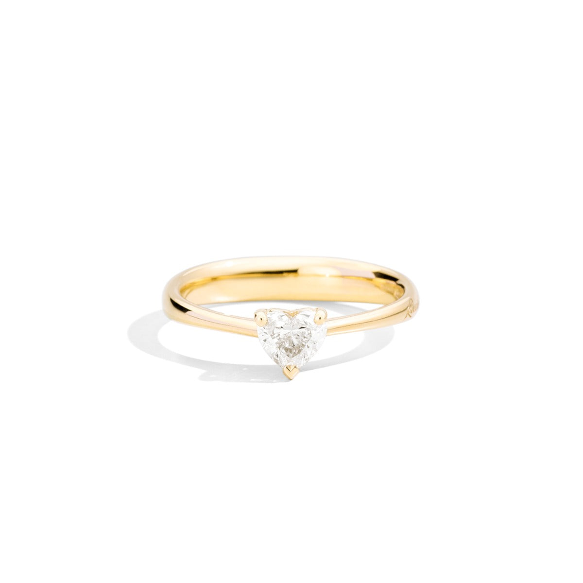 Solitario in oro giallo 18 kt e diamante naturale taglio brillante forma a cuore